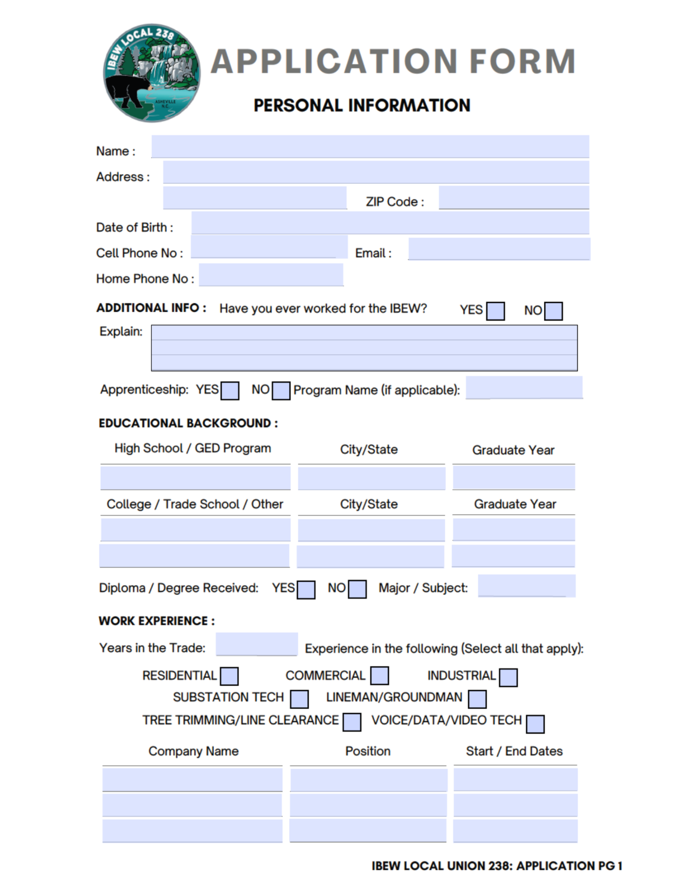 PLEASE CLICK ON THE "FILLABLE" APPLICABLE APPLICATION FORMS BELOW.