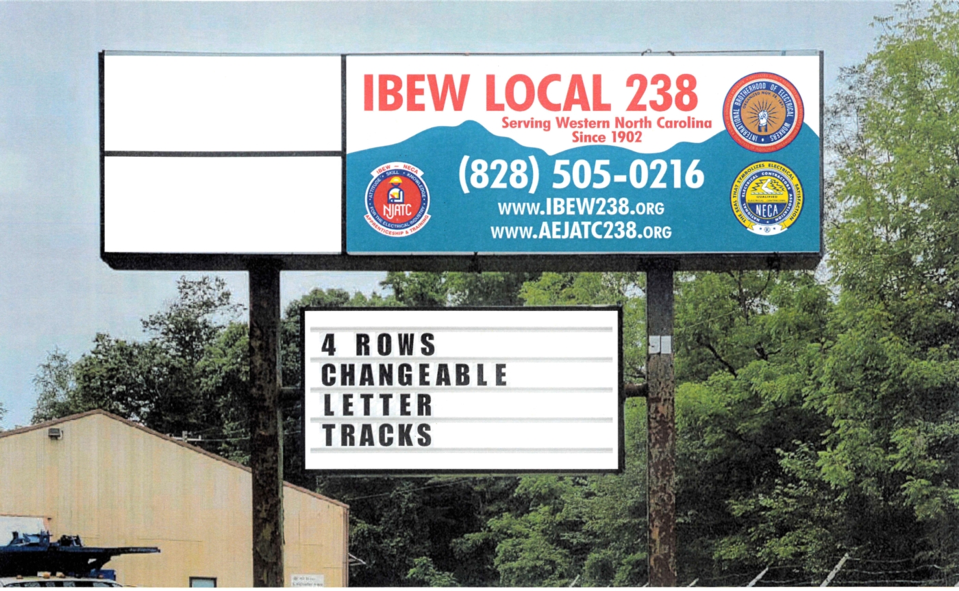 Brothers and Sisters, it's been over a year since we first began the process to have new sign faces created to be installed in the large existing sign frame on Local 238 property. We hope everyone is as happy as we are that actual work began today on our sign.